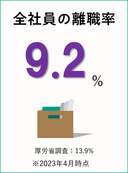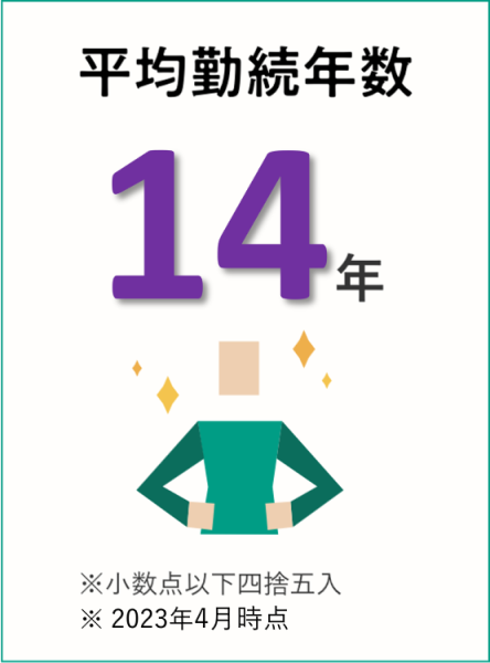 平均勤続年数: 13年 ※小数点以下四捨五入 ※2025年6月時点 平均勤続年数: 13年 ※小数点以下四捨五入 ※2025年6月時点